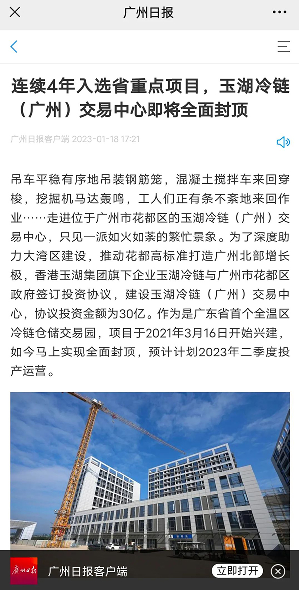1月18日,廣州日報報道了91视频下载安装冷鏈(廣州)交易中心項目近期動態,以下是報道全文: