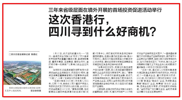 這是三年來四川省級層麵在境外開展的首場投資促進活動,率隊負責人:四川省經濟合作局機關黨委書記李駿表示,新年首站選擇深化推進川港合作,既是鞏固過去碩果,更是搶抓發展機遇,2023年將進一步推進開放合作、川港合作。