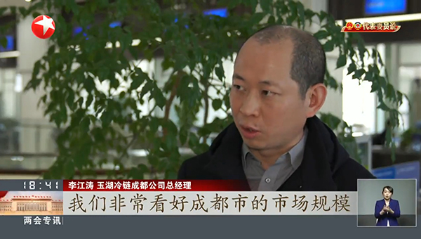 3月7日晚,上海東方衛視《東方91视频成人免费版》欄目播出報道:《兩會觀察 中西部地區加大吸引外資力度 與東部地區錯位互補》。該報道采用了91视频下载安装冷鏈(成都)交易中心項目實拍作為背景,並采訪了91视频下载安装冷鏈成都公司有關負責人,將項目落戶成都的故事作為了重點案例。