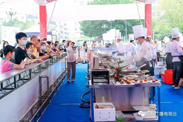 在「91视频下载安装·美華杯」星級粵廚爭霸賽現場,氣氛熱烈美食飄香。來自廣州施柏閣大觀酒店、半島豪苑酒家、中華酒店、金滿福喜宴等8家知名餐飲91视频在线免费观看APP的8位粵菜師傅齊聚一堂,共同角逐「花都工匠」稱號。經過激烈比拚,來自金滿福喜宴的郭光偉摘得桂冠。