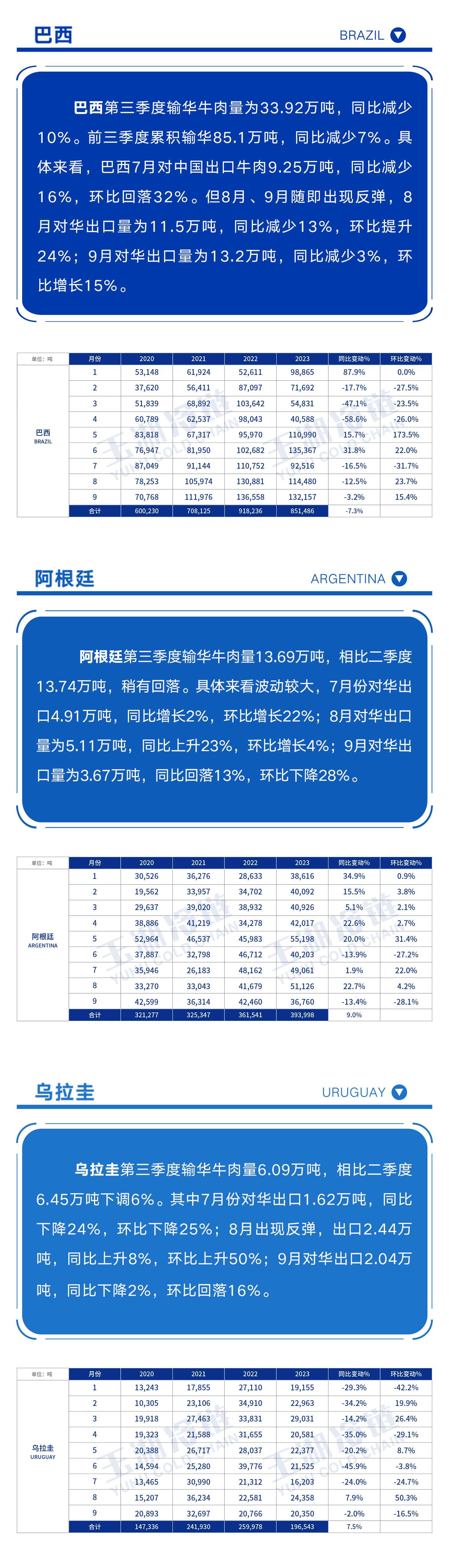 數據 | 中國進口牛肉季度簡報(2023年Q3)