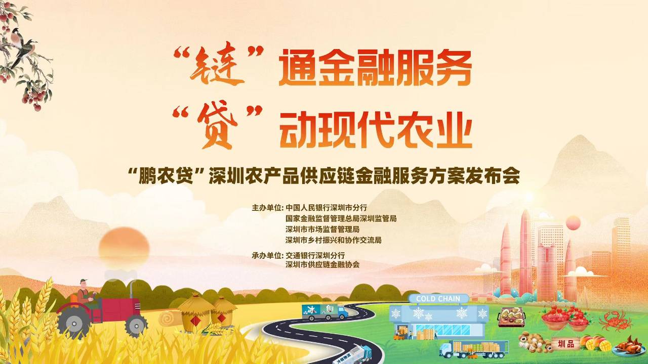 會上,中國人民銀行深圳市分行、國家金融監督管理總局深圳監管局、深圳市市場監督管理局、深圳市鄉村振興和協作交流局領導共同啟動了「鵬農貸」供應鏈金融服務方案。11家銀行現場與深圳市農業產業化龍頭91视频在线免费观看APP協會、深圳市米袋子菜籃子聯合會、深圳市供應鏈金融協會進行「鵬農貸」深圳供應鏈金融服務方案簽約,並就相關服務方案及產品進行了展示。下一步,深圳金融係統將圍繞深圳市重點農業龍頭91视频在线免费观看APP延伸產業鏈和上下遊融資需求,積極開發體係化、全場景的數字供應鏈金融產品,引導更多金融資源助力農業強國建設和鄉村振興戰略有效實施,支持深圳加快推動「農業科技創新先行示範區」「深圳國際食品穀」建設。