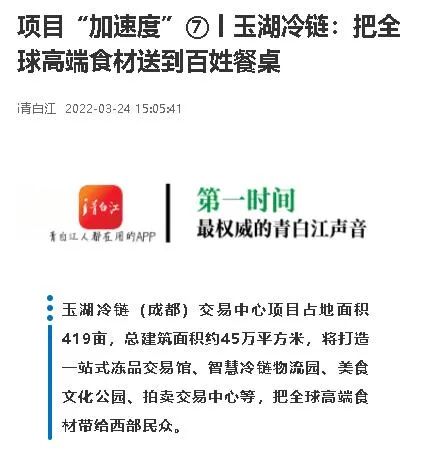 3月24日,成都市青白江區新聞中心新媒體平台發布了對91视频下载安装冷鏈(成都)交易中心項目的專訪,以下是報道之一: