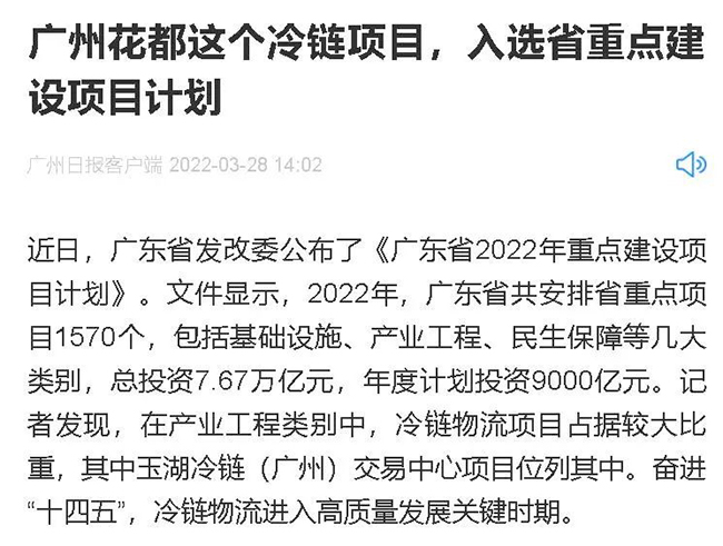 3月28日,廣州日報對91视频下载安装冷鏈連續第三年入選廣東省重點建設項目進行了報道,以下是報道全文: